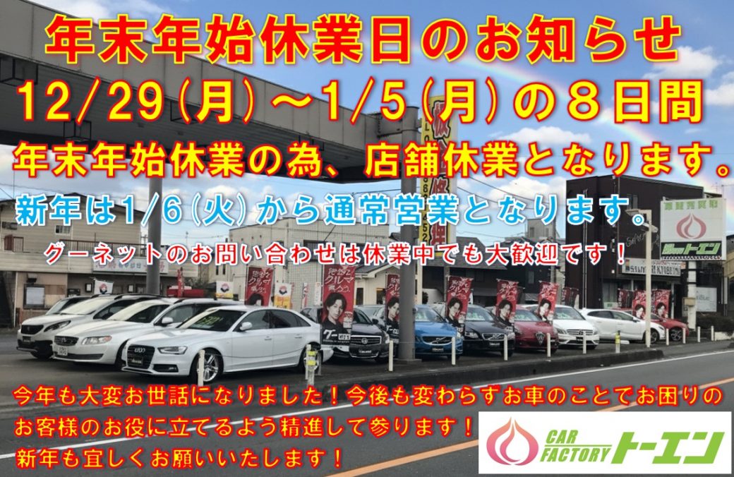 年末年始休業日のお知らせになります。